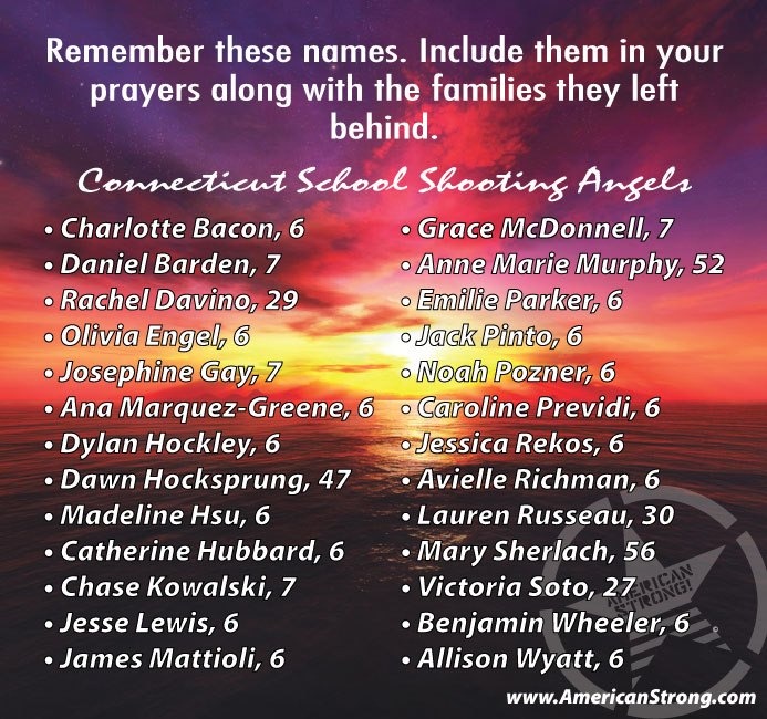 I am going to give my take on things, but before I do, I wish to say that it makes me sick that families were not even moments into the grieving process when politicians were already trying to carve out their agenda based on a senseless tragedy. The first concern should be with the survivors of the attack and the families of those lost. When I look at the list of victims on the photo at the top of the page (which was pulled from the American Strong FB page, hope they don’t mind), I admit I tear up. As I did when I first read of the massacre.