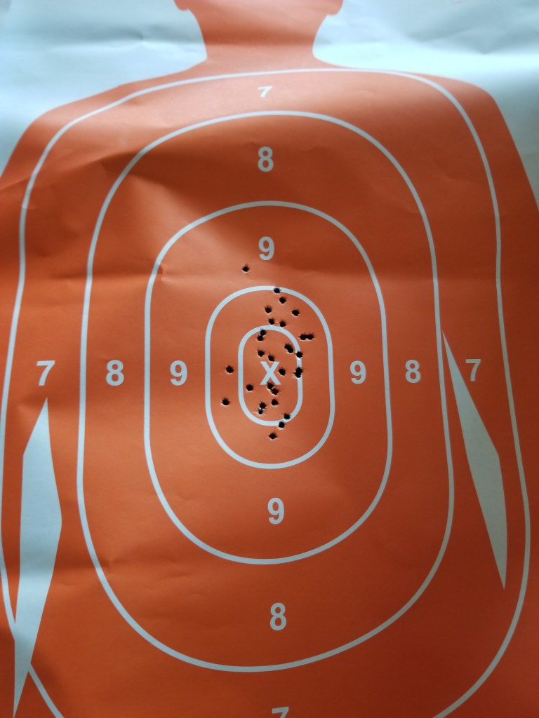 Now, I have never claimed to be John Wick. I have never even claimed to have anything more than passable marksmanship. In the photo above you can see the first thirty rounds fired from 15 yards. I emptied a standard capacity magazine and was quite happy with the results. In the first hundred rounds, zero malfunctions, and really nice accuracy straight out of the box.